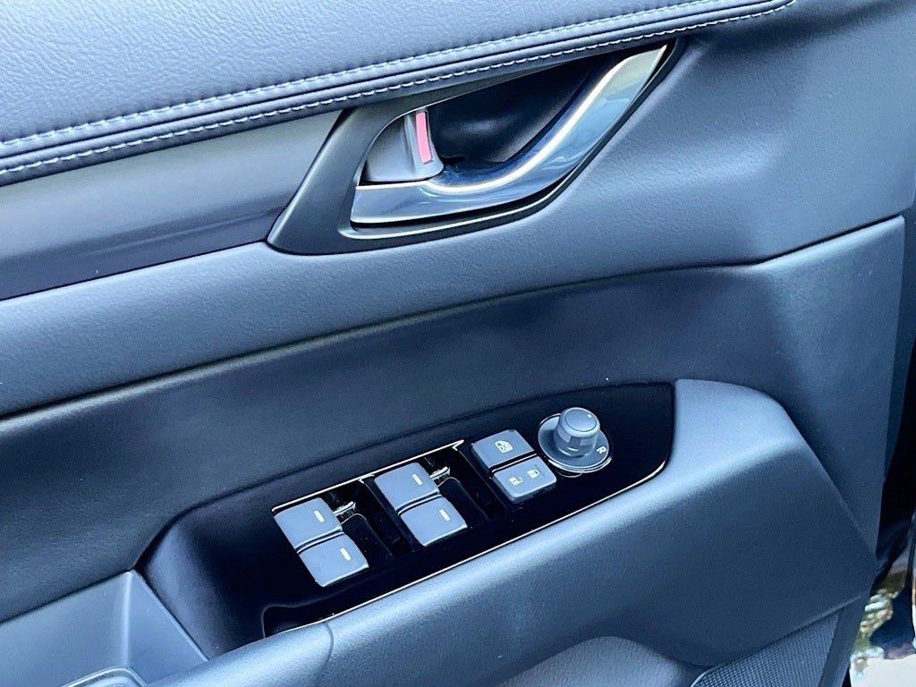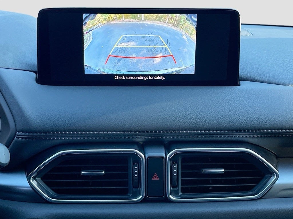 This CX5 includes a full suite of Mazda safety features including a backup camera blind spot monitoring lane departure warning lane keep assist rear cross traffic alert smart brake support advanced smart city brake support Mazda radar cruise control with stop and go advanced dual front airbags front side impact airbags front and rear side air curtains tire pressure monitoring system traction control dynamic stability control ABS with EBD and brake assist rear seat alert LATCH child safety seat anchors and an anti-theft engine immobilizer. LED headlights auto on off lighting high beam control daytime running lights rain sensing wipers fixed intermittent rear wiper turn signal mirrors and a shark fin antenna complete the exterior.