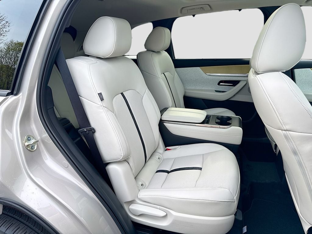 Inside, enjoy a thoughtfully designed 7 passenger layout with second row captains chairs and center console. Premium features include ventilated and heated front seats, heated second row seats, heated leather steering wheel, power tilt and telescopic steering column with memory, driver personalization system, Active Driving Display, 12.3 inch center display, 12.3 inch digital gauge cluster, Mazda online navigation, Alexa built in, wireless Apple CarPlay, wireless Android Auto, wireless phone charger, Bose 12 speaker premium audio, third row air vents, and second row window sunshades.