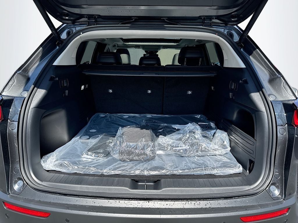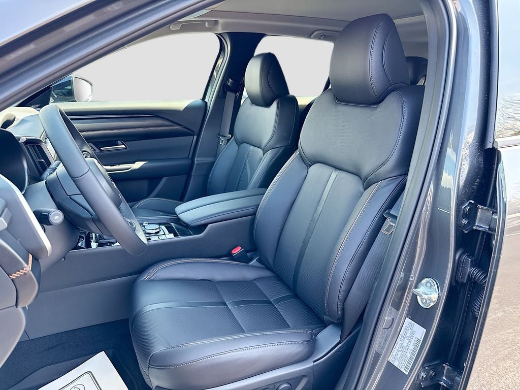 Five passenger seating, eight way power driver seat with power lumbar, heated front seats, sixty forty split fold down rear seat, leather wrapped steering wheel and gear selector, Mazda Advanced Keyless Entry, push button start, four USB Type C inputs, power panoramic moonroof, ten point twenty five inch color center display, multi function commander control, dual zone automatic climate control, rear air conditioning vents, Mazda Connected Services, AM FM HD Radio, Bluetooth® hands free audio, wireless Android Auto, wireless Apple CarPlay, wireless phone charger, Alexa built in.