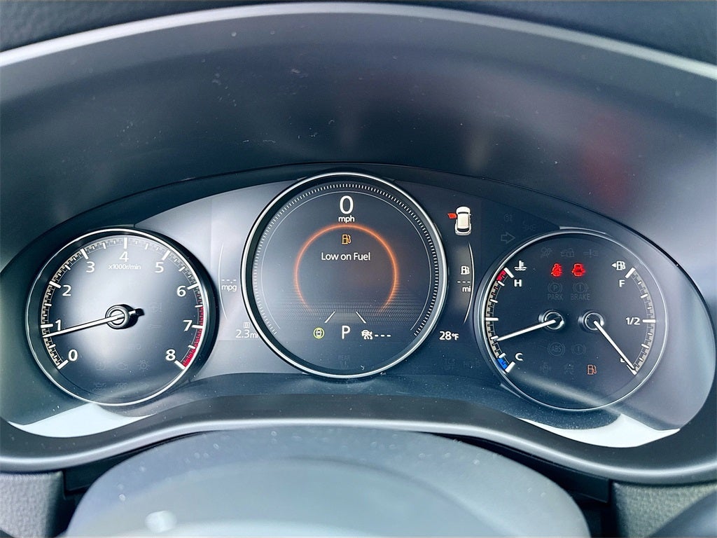 Inside the cabin you will enjoy half leatherette trimmed seats Mazda Advanced Keyless Entry dual zone automatic climate control rear air vents an electronic parking brake a leather wrapped steering wheel and gear selector illuminated vanity mirrors an overhead console with LED room lamp wireless phone charger Alexa Built In Mazda Connected Services and a 10.25 inch color center display with wireless Apple CarPlay wireless Android Auto Bluetooth® hands free audio HD Radio four USB C ports an 8 speaker audio system and an easy to use multi function commander controller.