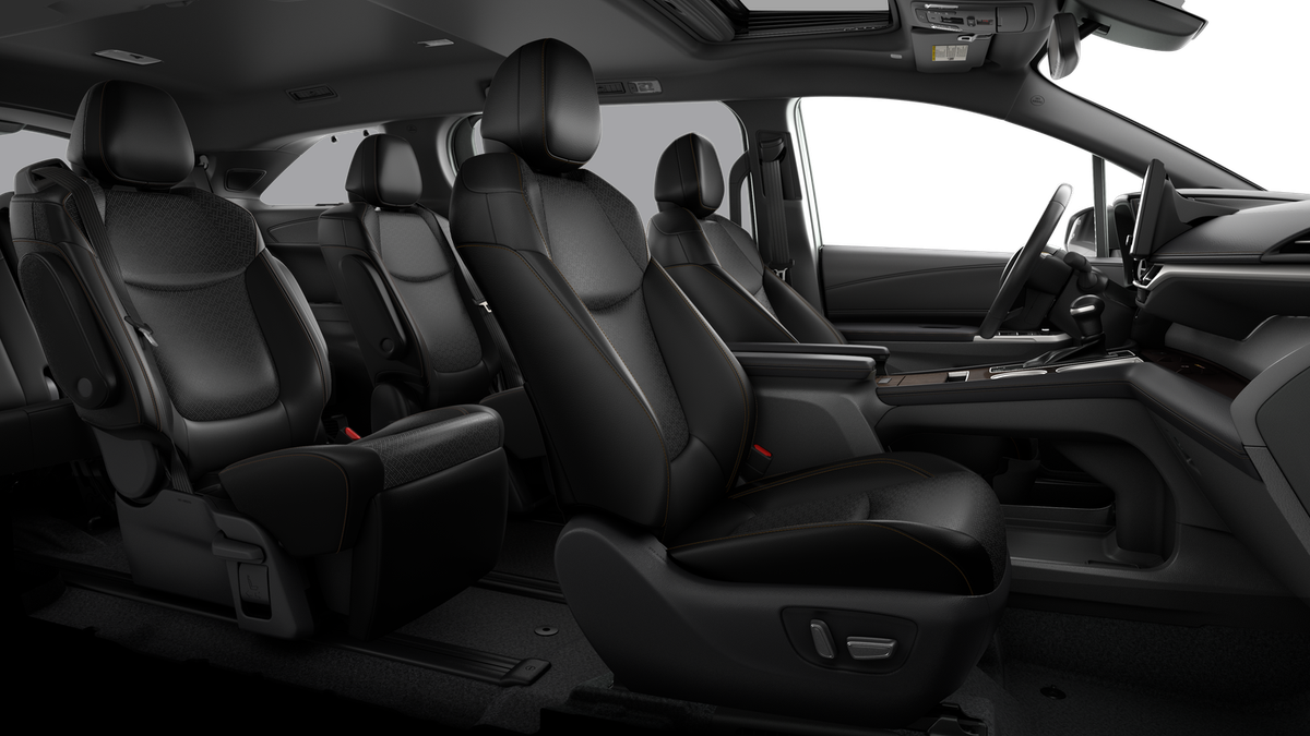 - 7-passenger seating with premium leather-trimmed second-row-seat captain's chairs with super-long-slide feature and ottomans [reclining_seat]