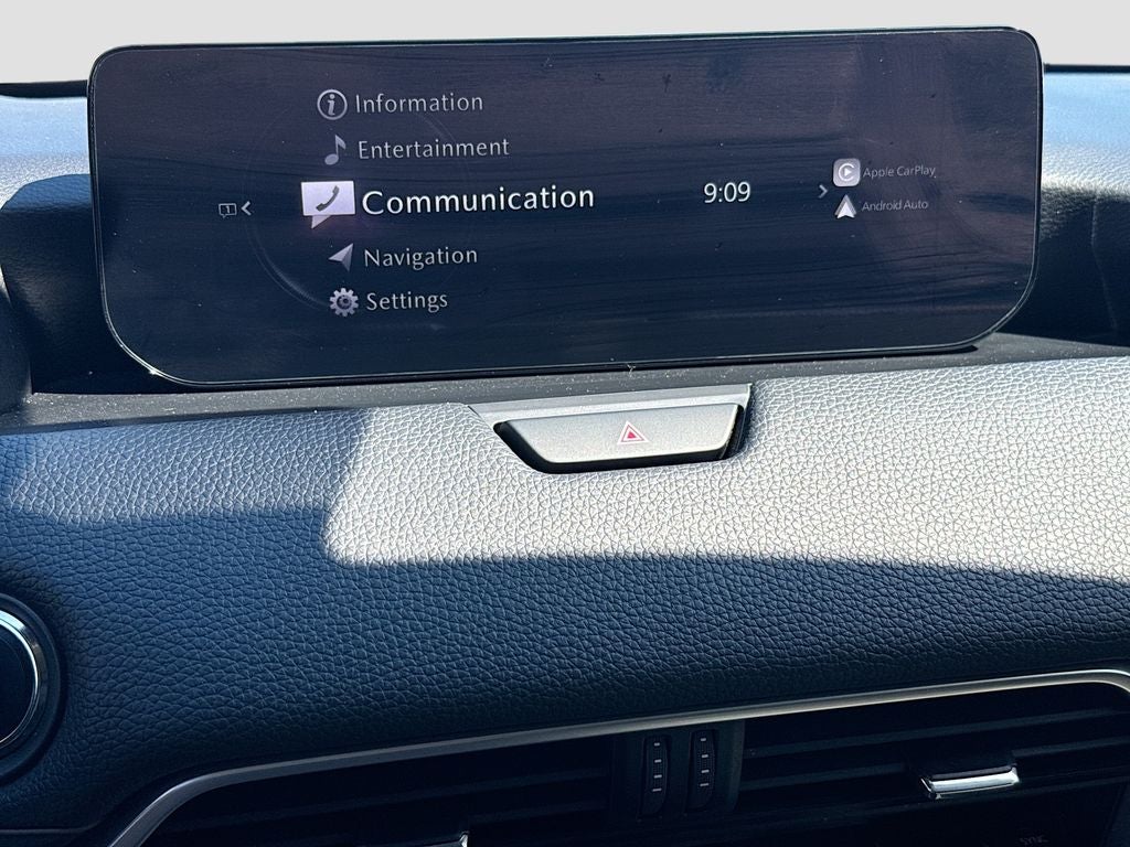Inside, the cabin offers a refined and spacious layout with leather trimmed seating in the first and second rows, heated front seats, an 8 way power driver seat with lumbar, 4 way power passenger seat, leather wrapped steering wheel, paddle shifters, push button start, and Mazda Advanced Keyless Entry. Technology highlights include a 10.25 inch color center display, Active Driving Display, wireless Apple CarPlay, wireless Android Auto, wireless phone charger, Bluetooth® hands free phone and audio, Mazda Connected Services, six USB inputs, two 12 volt outlets, and an AM FM HD radio system with eight speakers. Comfort continues with three zone automatic climate control, third row air vents, and second row window sunshades.