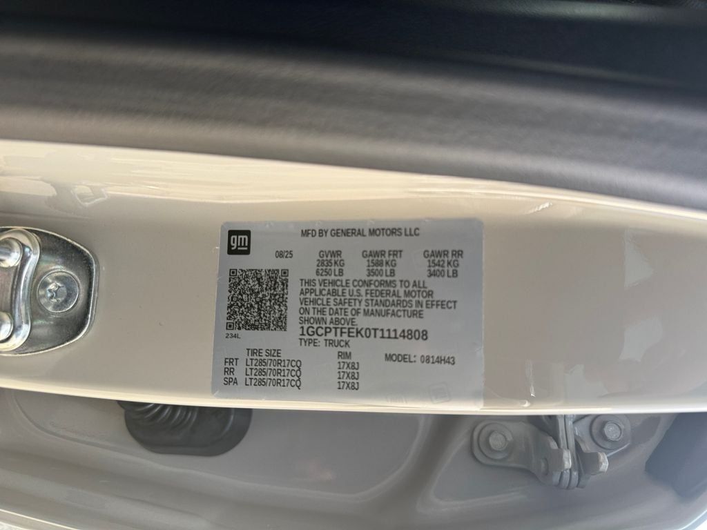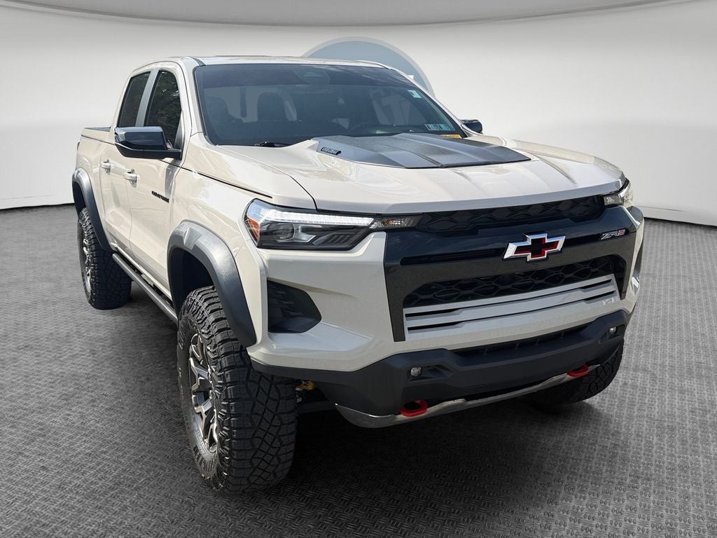 2.7L TurboMax turbocharged 4-Cylinder engine (310 HP / 430 lb-ft torque)~4x4 capability~8-speed automatic transmission~ZR2 off-road performance trim~Multimatic DSSV spool-valve dampers~3 factory-installed lift with wider stance~Front & rear electronic locking differentials~33 mud-terrain tires~Off-road performance suspension with skid plates & rocker protection~Baja drive mode for high-speed desert performance~Terrain mode for low-speed rock crawling~Tow package capability (up to 6,000 lbs)~Advanced trailering system~Chevrolet Infotainment 3 system with 11.3 touchscreen~Google built-in integration~Apple CarPlay & Android Auto~Bluetooth® connectivity~11 digital driver information center~Backup camera with off-road views~Remote start system~Keyless entry & push-button start~Heated front seats & heated steering wheel ~ Dual-zone automatic climate control~Chevy Safety Assist suite~Forward Collision Alert & Automatic Emergency Braking~Lane Keep Assist with Lane Departure Warning~LED headlights & signature lighting~17 alloy wheels with aggressive off-road tires~Extreme off-road capability combined with modern tech, rugged durability, and bold ZR2 styling built for serious trail performance